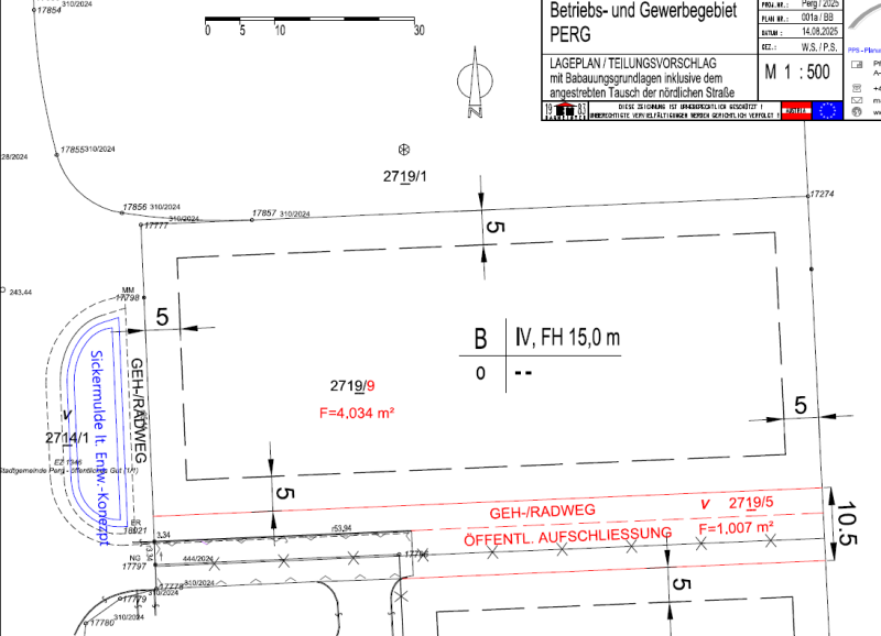 Bei der Flächenwidmung handelt es sich um eine Baulandwidmung - Betriebsbaugebiet (B), die unterschiedliche gewerbliche Nutzungsvarianten zulässt. Das Arael bietet großzügigen Platz für eine vielfältige Bebauung, sei es für Büro-, Produktions- oder Gewerbebauten.