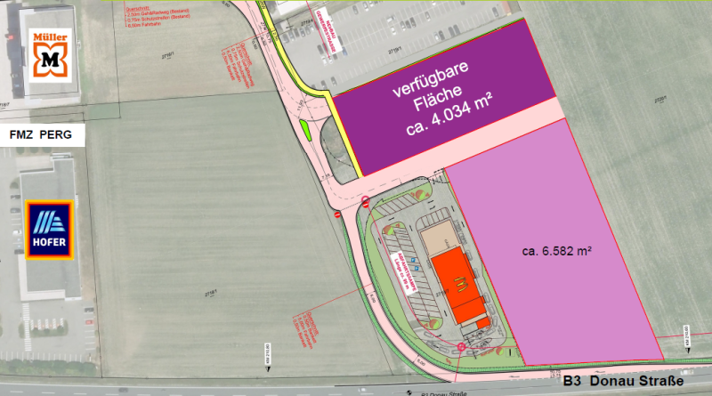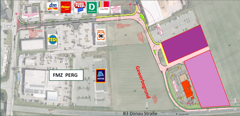 Der Betriebsbaugrund befindet sich in Perg, einer wirtschaftlich aufstrebenden Region in Oberösterreich. Das Grundstück liegt unmittelbar an der stark frequentierten Bundesstraße B3, was für eine hervorragende Sichtbarkeit und optimale Verkehrsanbindung sorgt. Das Gewerbegebiet Perg sowie das Fachmarktzentrum befinden sich unmittelbar angrenzend. Eine direkter Anschluss an die B3 in Fahrtrichtung Linz ist gegben.